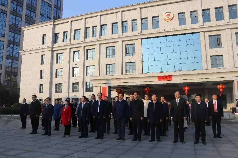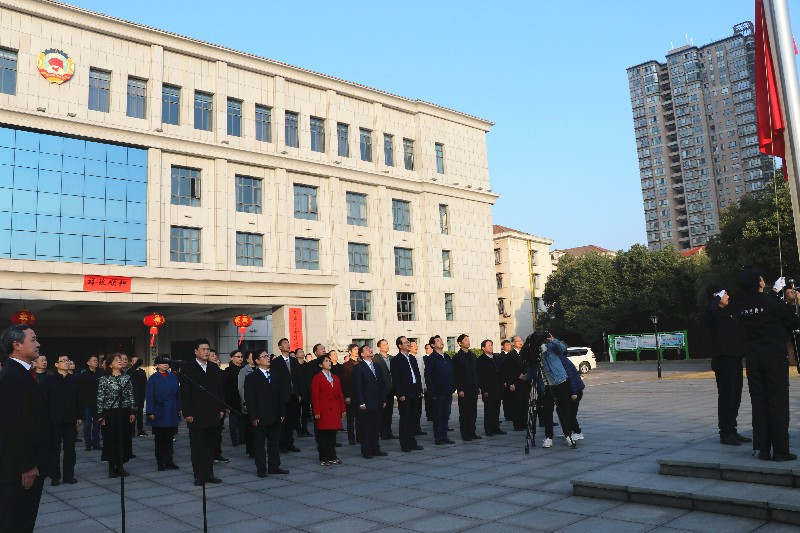 上午8点,升旗仪式正式开始。在雄壮、激昂的国歌声中,机关全体党员干部肃然而立,凝视着鲜艳的五星红旗冉冉升起,衷心祝愿祖国更加繁荣昌盛。
