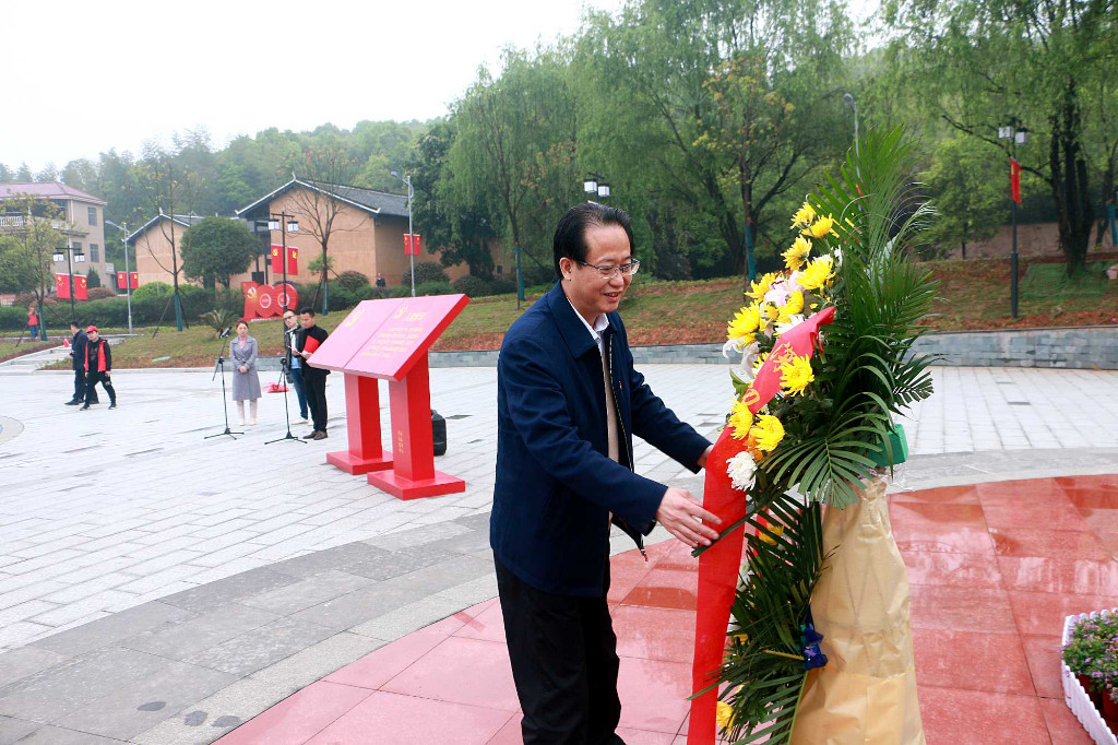 蔡溪代表机关全体党员干部向杨得志同志铜像敬献花篮