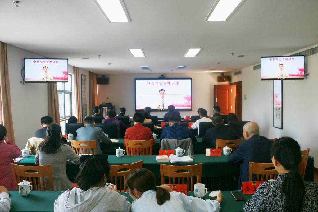 4月23日,市政协机关组织全体干部职工集中学习收看中共党史党史系列讲座第七期,市政协党组成员朱庸靖,秘书长袁生华参加学习。
