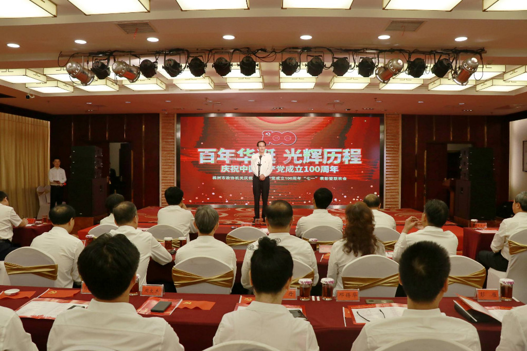 联欢会由市政协机关干部自编自导自演,以歌曲、舞蹈、情景表演、诗朗诵等艺术形式,礼赞党的百年奋斗历程和丰功伟绩,展现株洲改革发展成就以及政协人新面貌。演出最后,全场一同高唱《没有共产党就没有新中国》,深情表达出大家对党的无限热爱、无限忠诚。