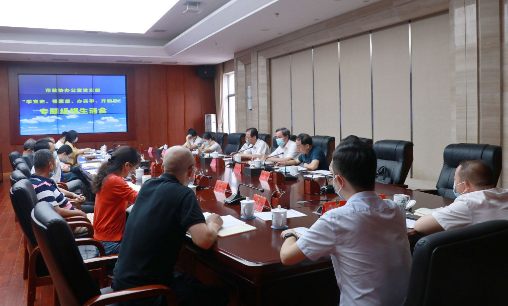 8月26日上午,市政协办公室支部委员会召开“学党史、悟思想、办实事、开新局”专题组织生活会,市政协党组书记、主席蔡溪以普通党员身份参加会议,市委党史学习教育第六巡回指导组组长肖支前一行到会指导,市政协秘书长袁生华参加。