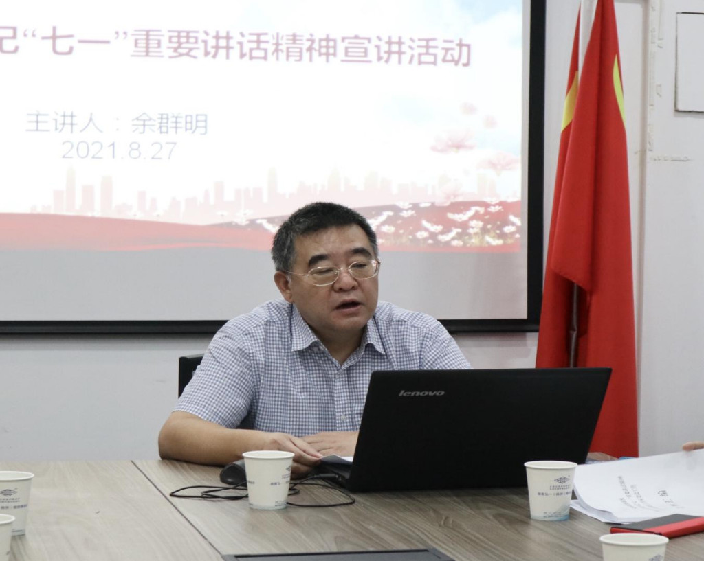 余群明在宣讲中提到习总书记“七一”重要讲话高屋建瓴、视野宏阔、内涵丰富、意境深远,是一篇新时代中国共产党人的政治宣言,是一篇新时代坚持和发展中国特色社会主义、实现第二个百年奋斗目标的行动纲领,对我们全面建成社会主义现代化强国,实现中华民族伟大复兴的中国梦具有极其重大的现实意义和深远的历史意义,是团结带领广大人民走向幸福新征程的“宣言书”、“动员令”和“冲锋号”。
