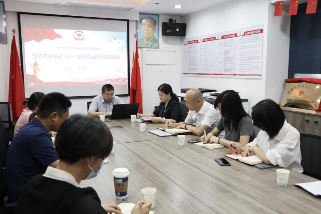 8月27日上午,市政协副主席余群明率社法委全体工作人员赴位于弘一律师事务所的市政协社法委委员工作室开展习近平总书记“七一”重要讲话精神宣讲活动。