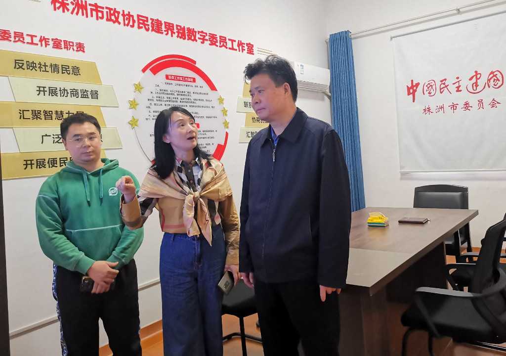 市委会专职副主委刘永忠介绍了工作室的建设情况,并演示了由会员企业自主研发的智慧交互屏。株洲民建界别委员工作室通过硬件+软件+实体相结合的方式,实现委员联络室、综合调度室、线下读书分享室、线上民意收集室、远程协商工作室、多媒体洽谈室等六室合一的功能应用创新,使民建界别政协委员更高效更便捷服务会员群众,进一步做好联系服务、政策宣传、释疑解惑、协调关系、化解矛盾等工作。株洲民建界别委员工作室在市政协的支持下,正在积极申报省级示范委员工作室。