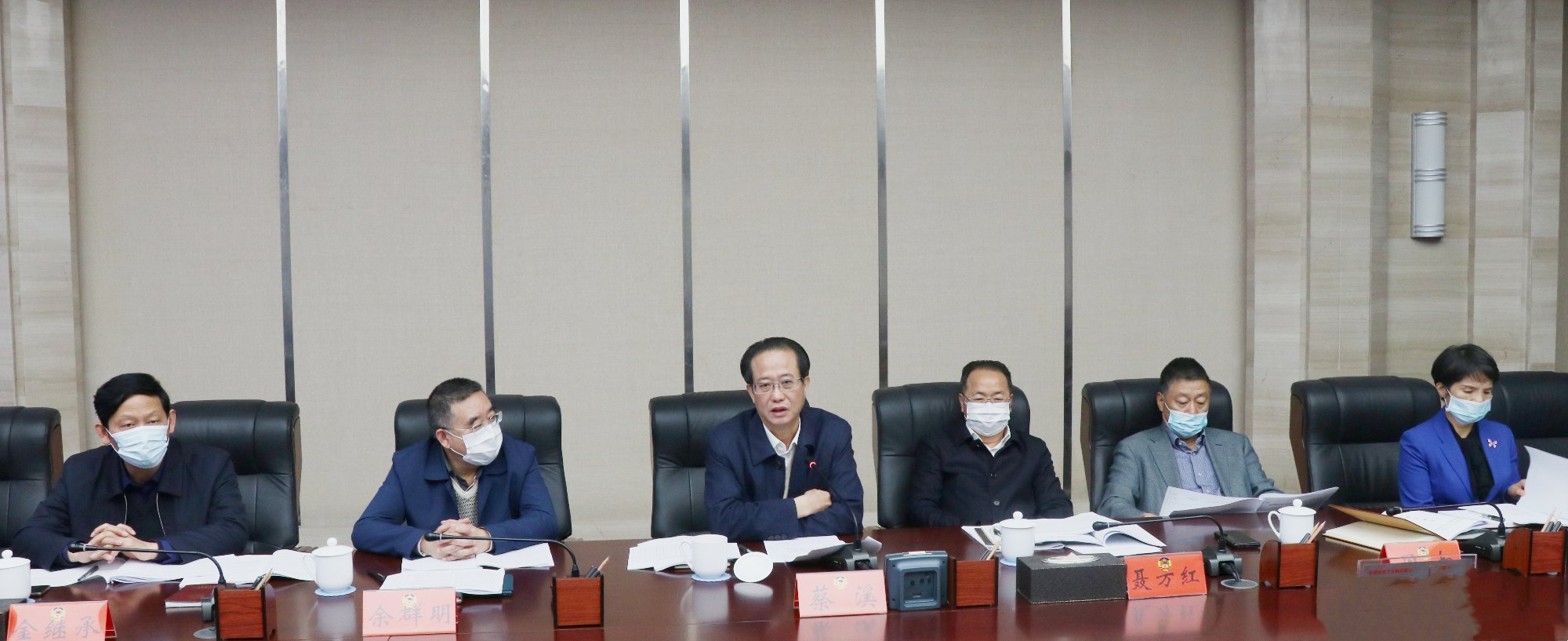 12月10日,市政协党组书记、主席蔡溪主持召开市政协党组(扩大)会议、九届六十次主席会议,传达学习习近平总书记在第三次“一带一路”建设座谈会、全国宗教工作会议等会议上的重要讲话精神,传达学习了省政协有关重要会议精神,研究、协商审议市政协十届一次会议有关事项。