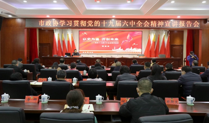 1月18日,株洲市政协召开党组理论学习中心组(扩大)学习暨党的十九届六中全会精神宣讲报告会,邀请市委宣讲团成员、市政协研究室主任谭韶峰作宣讲报告。株洲市政协副主席杨小幼、何建红,秘书长姚永告参加会议。