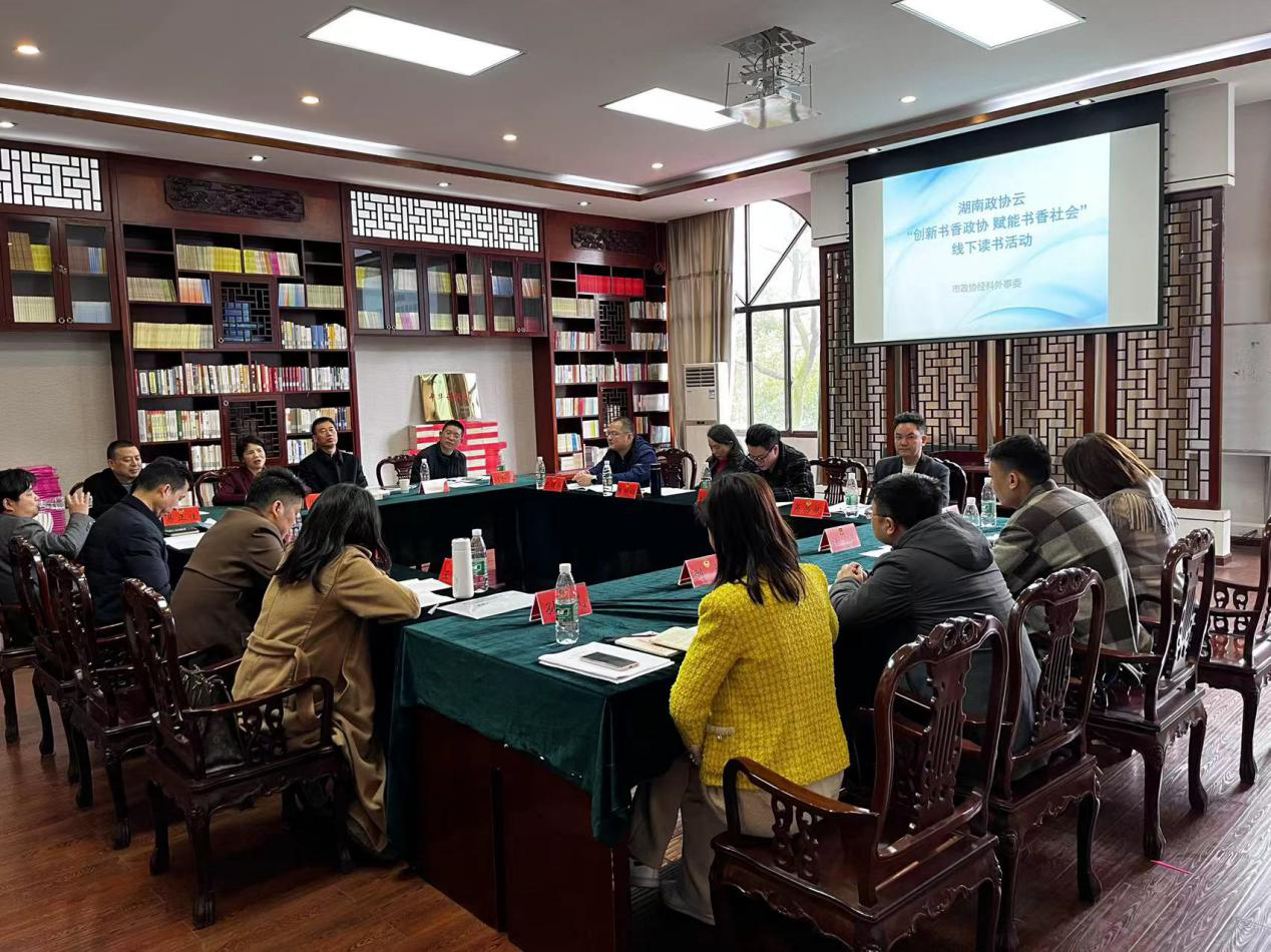 3月7日,市政协经科外事委在市图书馆举办湖南政协云“创新书香政协 赋能书香社会”线下主题读书活动,市政协党组副书记、副主席周雪辉出席读书活动,市政协经科外事委主任邓锡华主持。