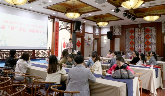 春回大地,万物复苏。为庆祝国际劳动妇女节112周年,3月10日,市政协机关工会组织开展“品‘香’文化,做韵味女人”妇女节主题活动,机关全体女同志前往九畹书院开展香文化体验,制作中药香囊。市政协副主席周雪辉、杨小幼,秘书长姚永告参加活动。
