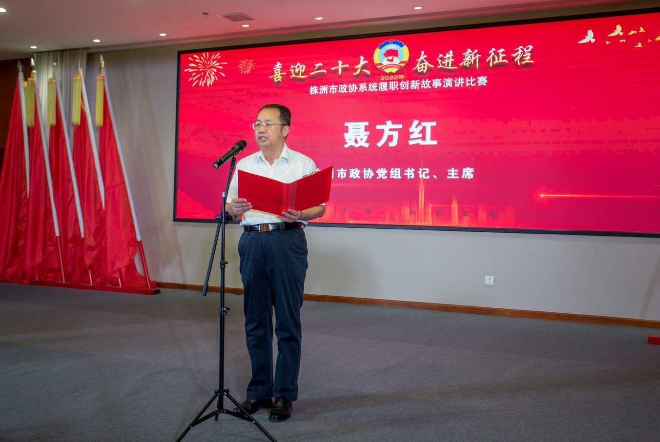 6月27日,“喜迎二十大 奋进新征程”株洲市政协系统履职创新故事演讲比赛举行。市政协党组书记、主席聂方红出席并致辞。