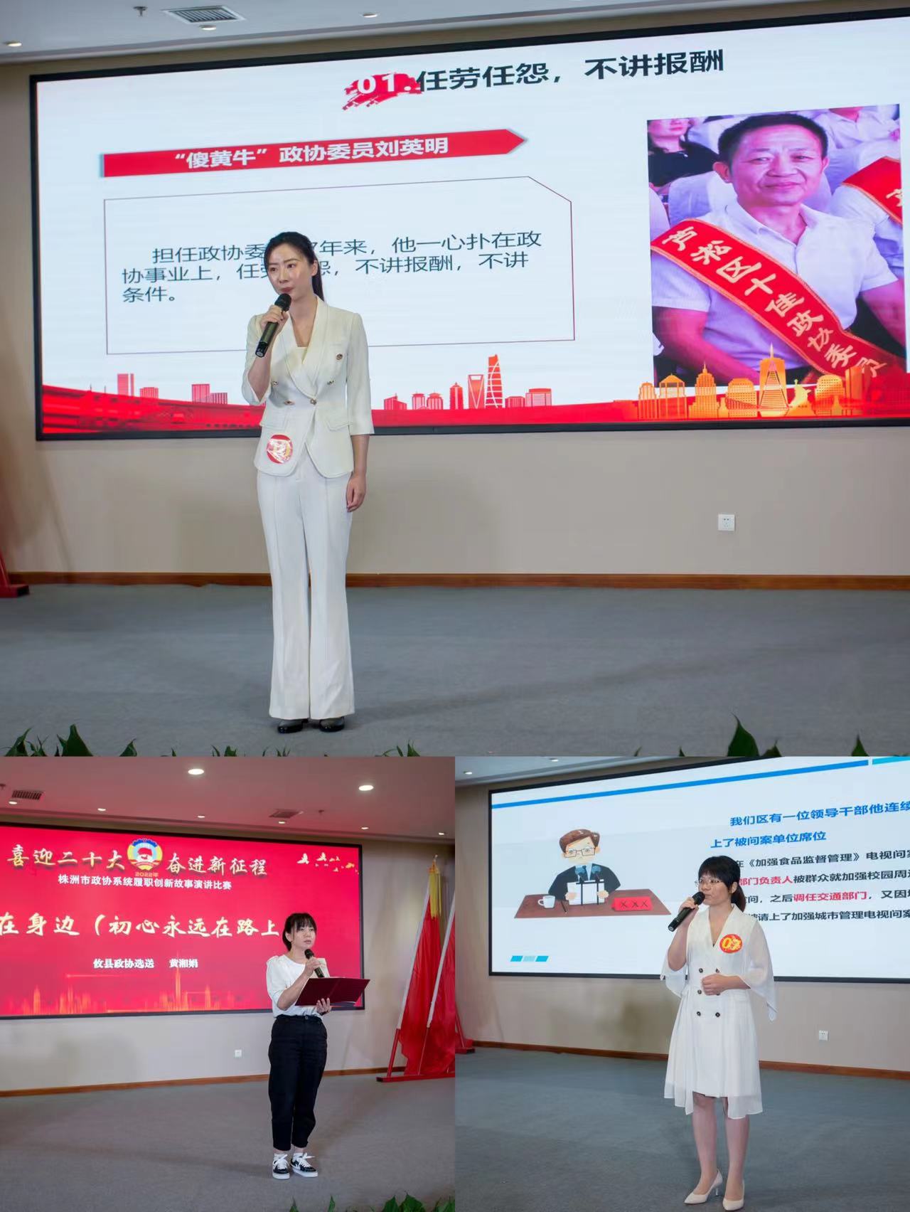 比赛现场,市本级政协选送的14名选手、各县区政协选送的10名选手,围绕委员工作室、委员提案、乡村振兴、读书活动等创新性举措,以昂扬激情和生动感人的事例,讲述了一个个履职创新、建言献策、联系服务界别群众和助力株洲经济社会高质量发展的动人故事。