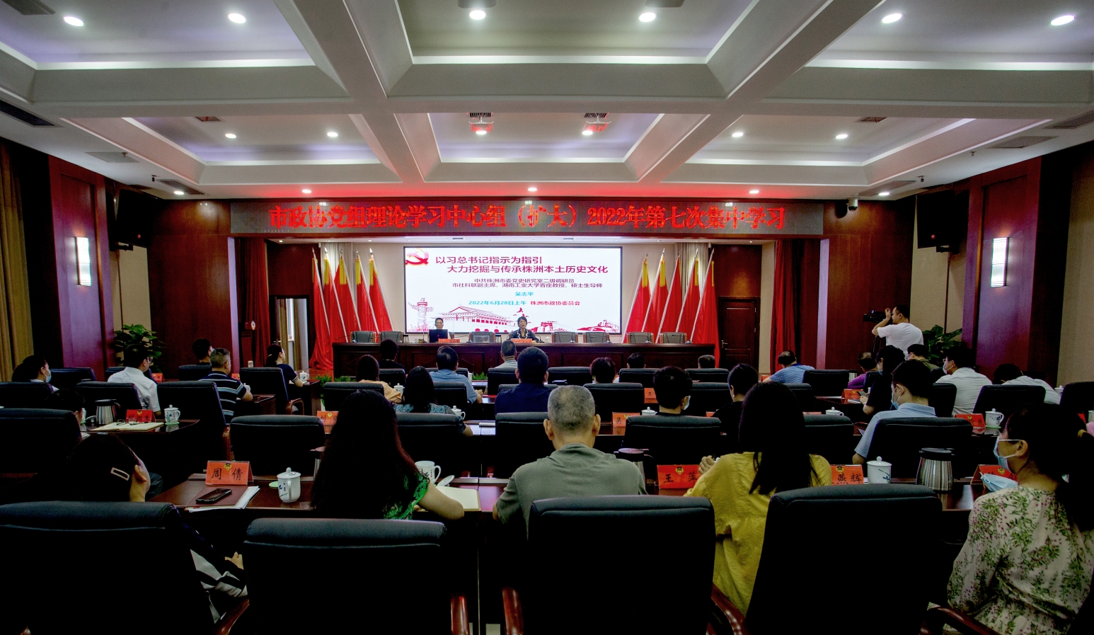 6月28日,株洲市政协举行党组理论学习中心组第七次集中学习暨第四期“委员大讲堂”,邀请中共株洲市委党史研究室二级调研员、市社科联副主席吴志平作辅导报告。市政协副主席周雪辉主持会议。