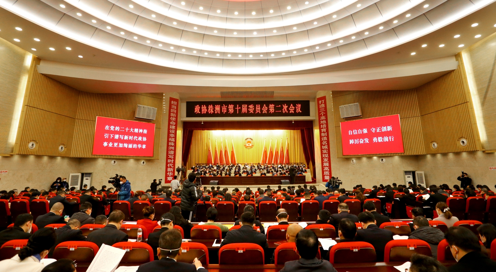 12月27日上午,政协株洲市第十届委员会第二次会议在市委礼堂隆重开幕。来自社会各界、各条战线的市政协委员齐聚一堂,满怀奋进豪情,积极履行政治协商、民主监督、参政议政职能,为培育制造名城、建设幸福株洲献计出力。市委书记曹慧泉,市委副书记、市长陈恢清出席会议并在主席台前排就座。