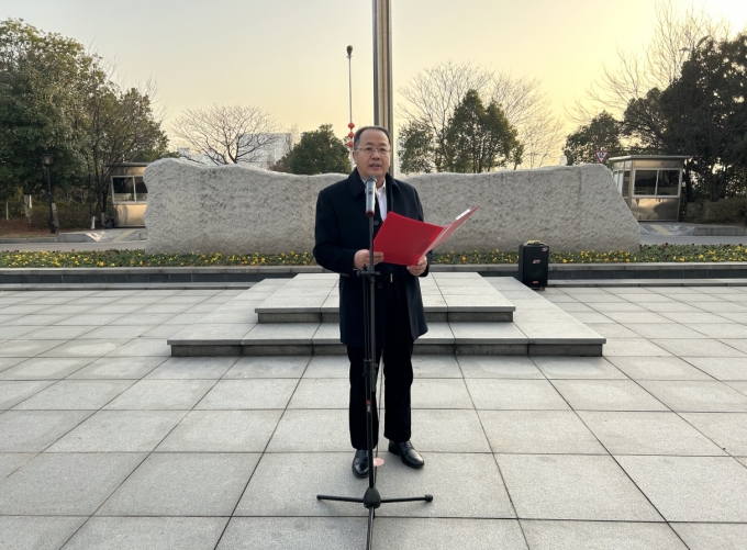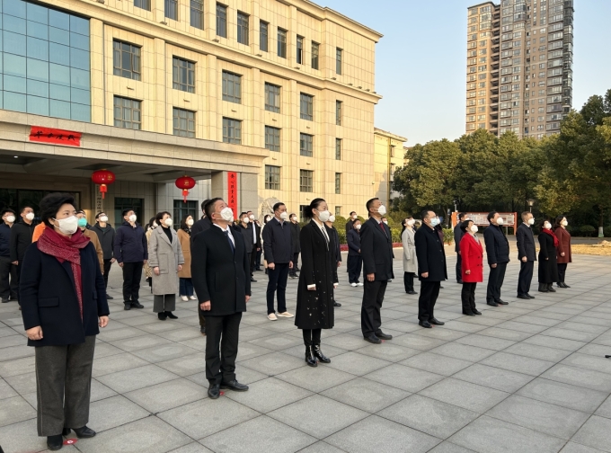 春临大地百花艳,节至人间万象新。1月28日,癸卯兔年上班第一天,市政协机关举行新春升国旗仪式暨“开年第一课”集中学习。市政协主席聂方红出席升旗仪式并讲话。市政协副主席周雪辉、周恕、柳怀德、杨小幼、何建红、朱胜辉、陈艳娟、程轶辉、周建明出席仪式,秘书长许志汉主持。