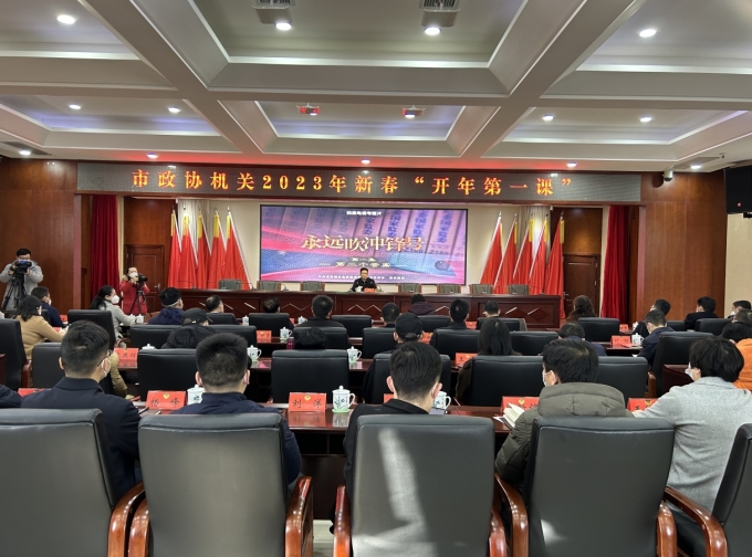 仪式结束后,市政协主席、副主席前往市委出席有关活动。机关干部、职工参加“开年第一课”集中学习,观看政论专题片《永远吹冲锋号》。