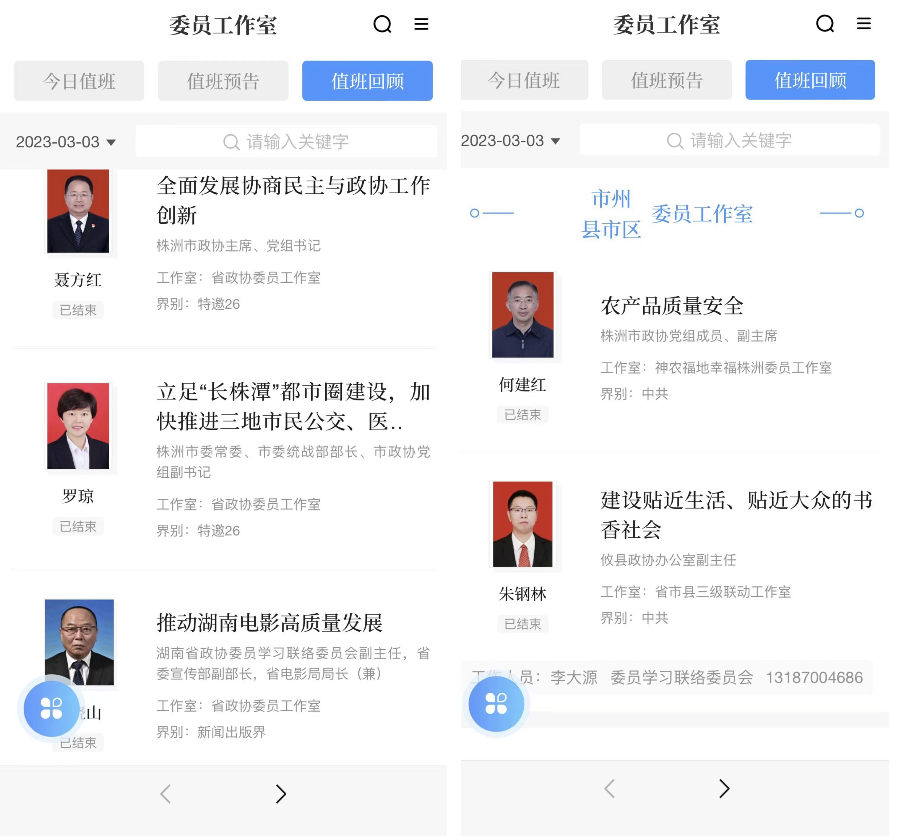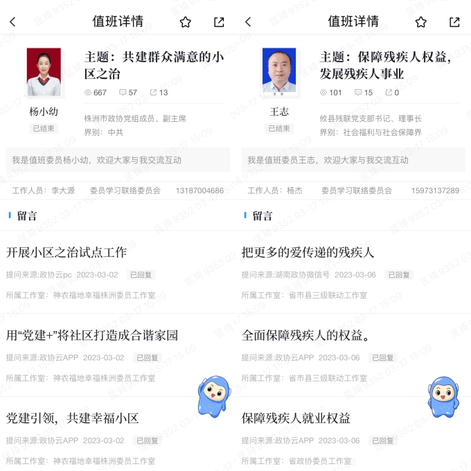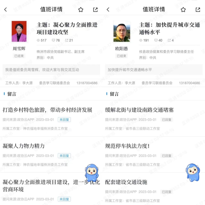 今年是全面贯彻落实中共党的二十大精神的开局之年,为深入贯彻习近平总书记“政协委员要更好联系和服务所在界别的群众”重要指示精神,进一步深化政协云履职运用,更好地走好网上群众路线。 3月1日至3月31日,株洲市政协积极组织委员参与湖南“政协云”线上联动值班工作,通过精心挑选委员、精选值班主题、精细服务保障,更好地倾听群众呼声、回应群众关切、提升履职质效。此次线上值班由省市县三级政协委员共同参与,每天均安排1名株洲市政协委员和1名攸县政协委员会同部分省政协委员联动值班。值得一提的是,株洲市政协主席会议成员、中共界别委员和各界别召集人带头上阵。