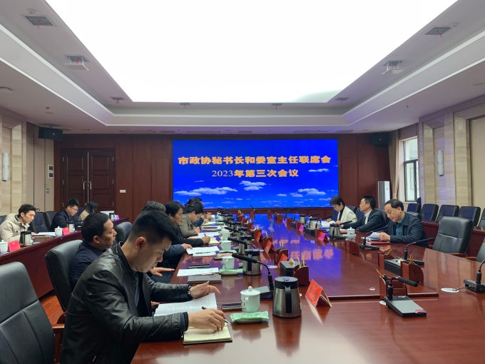 3月30日下午,市政协秘书长许志汉主持召开秘书长和委室主任联席会议2023年第三次会议,总结前阶段工作完成情况,就近期有关重点工作进行研究部署。市政协副秘书长、各委室主任出席。