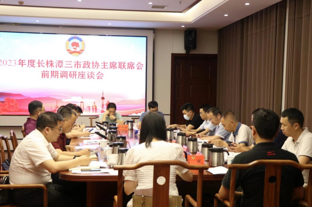 6月2日下午,市政协党组书记、主席聂方红主持召开2023年度长株潭三市政协主席联席会前期调研座谈会。市政协副主席何建红、秘书长许志汉参会。