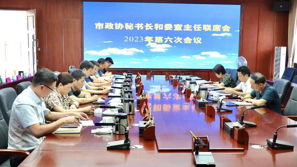 6月28日,市政协召开秘书长和委室主任联席会议2023年第六次会议,传达学习上级有关会议和文件精神,总结前阶段工作完成情况,研究部署近期重点工作。市政协秘书长许志汉主持会议,市政协副秘书长、各委室主任出席。