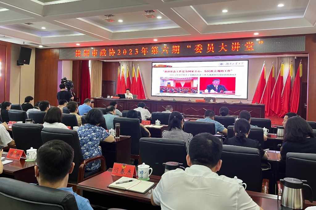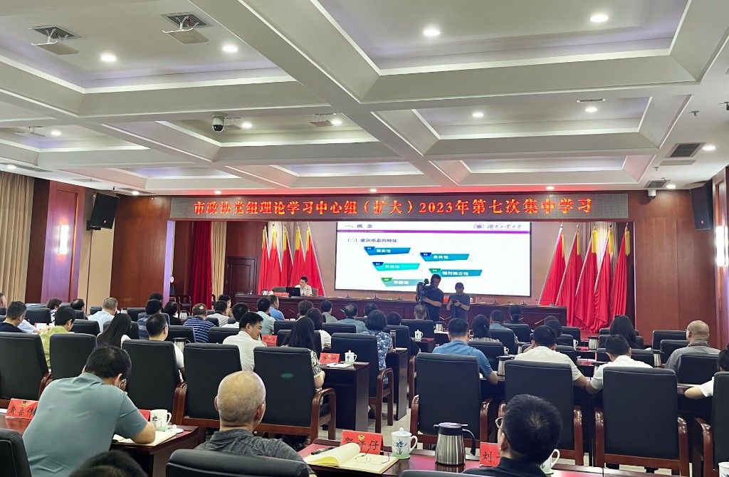 7月24日,市政协党组理论学习中心组(扩大)2023年第七次集中学习暨第六期“委员大讲堂”活动举行。市政协副主席周雪辉、周恕、柳怀德、杨小幼、何建红、程轶辉、周建明参加。