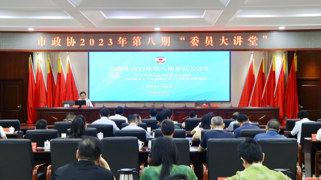 谭险夷围绕“深学笃用习近平生态文明思想,加快建设人与自然和谐共生的现代化新湖南”主题,从新时代生态环境保护面临新形势、肩负新任务、需要新思维等方面,结合湖南实际,讲授了一堂精彩的辅导课,并进行了互动交流,为现场提问的委员们答疑解惑。