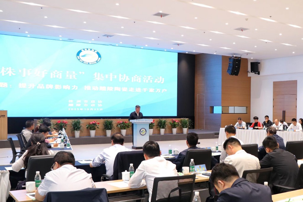 10月23日下午,聚焦“提升品牌影响力,推动醴陵陶瓷走进千家万户”这一主题,市政协“株事好商量”集中协商议事活动在醴陵华联瓷业举行。省政协副主席李民到现场调研观摩,市政协主席聂方红参加。