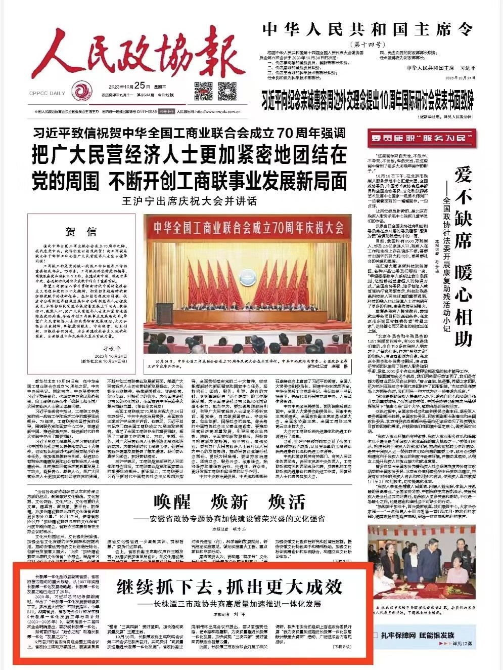 《人民政协报》(2023年10月25日 第 1 版)