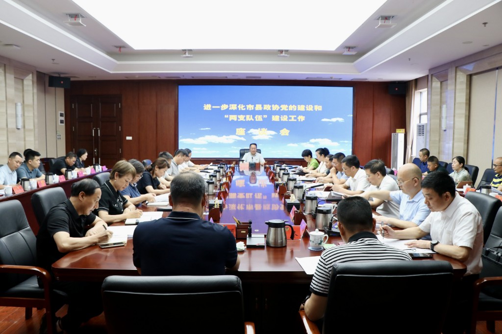 今天(5月28日),市政协党组书记、主席聂方红主持召开关于进一步深化市县政协党的建设和“两支队伍”建设工作座谈会,传达省政协有关会议和文件精神,就深化市县政协党的建设、“两支队伍”建设、改善生态环境专项民主监督等工作总结经验做法、查找问题不足,进一步统一思想、明确要求、深化推进。聂方红强调,全市政协组织要把党建引领摆在首位,把融合赋能落到实处,坚持实事求是、统筹谋划、常抓不懈、务求实效,为推动株洲高质量发展贡献政协力量。