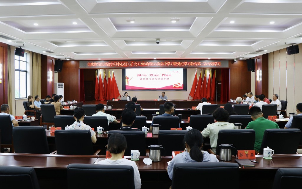 今天(5月29日),市政协党组书记、主席聂方红主持召开市政协党组理论学习中心组(扩大)2024年第六次集中学习暨党纪学习教育第二次专题学习,邀请市纪委副书记、市监委副主任刘蕾围绕《中国共产党纪律处分条例》作专题辅导报告。