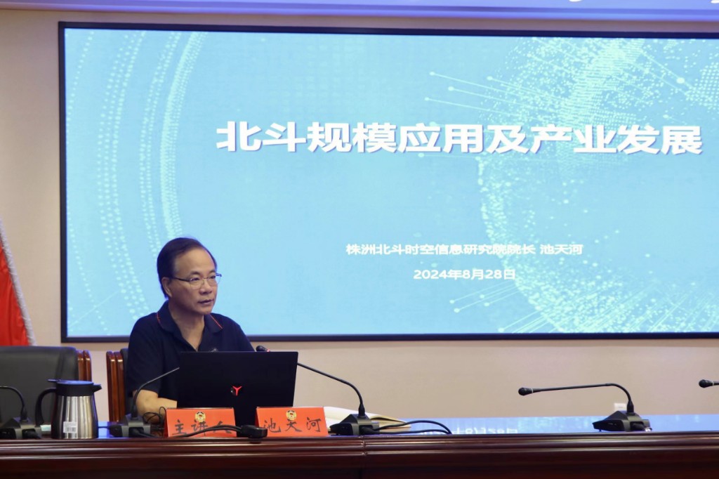 讲座中,池天河教授介绍了北斗系统的建设情况和相关基础技术,从专业学术的角度分析了株洲北斗产业的规划路径,并就如何助力北斗规模化应用以及北斗时空信息产业发展,提出了对策建议。
