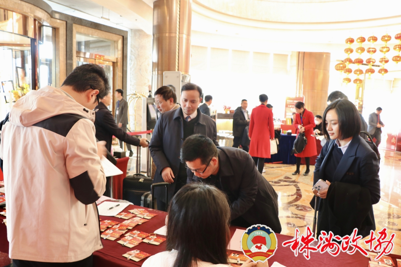 领取资料、佩戴证件……来到住地,在工作人员的引导下,政协委员们有条不紊地办理相关手续。交流履职心得、修改完善建议,大家精神昂扬,迅速进入省“两会”状态。