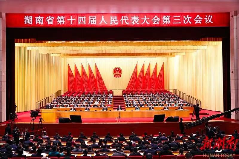 1月14日上午,湖南省第十四届人民代表大会第三次会议在省人民会堂隆重开幕。省长毛伟明代表省人民政府向大会作工作报告。
