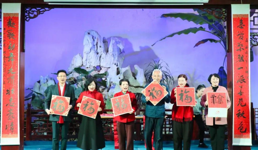 一歌一舞一吉他的完美融合,生动演绎出了歌曲《紫》宛转悠扬的意境;深情对唱《灯火里的中国》充分展现了青春婀娜、潇洒辽阔,让人心生温暖和振奋;原创台词的“三句半”《政协有力量》,用株洲话逗得现场笑声和掌声不断;歌曲联唱环节在熟悉动人的旋律中把活动推向高潮,现场写福送福也让大家称赞连连,幸福感满满。