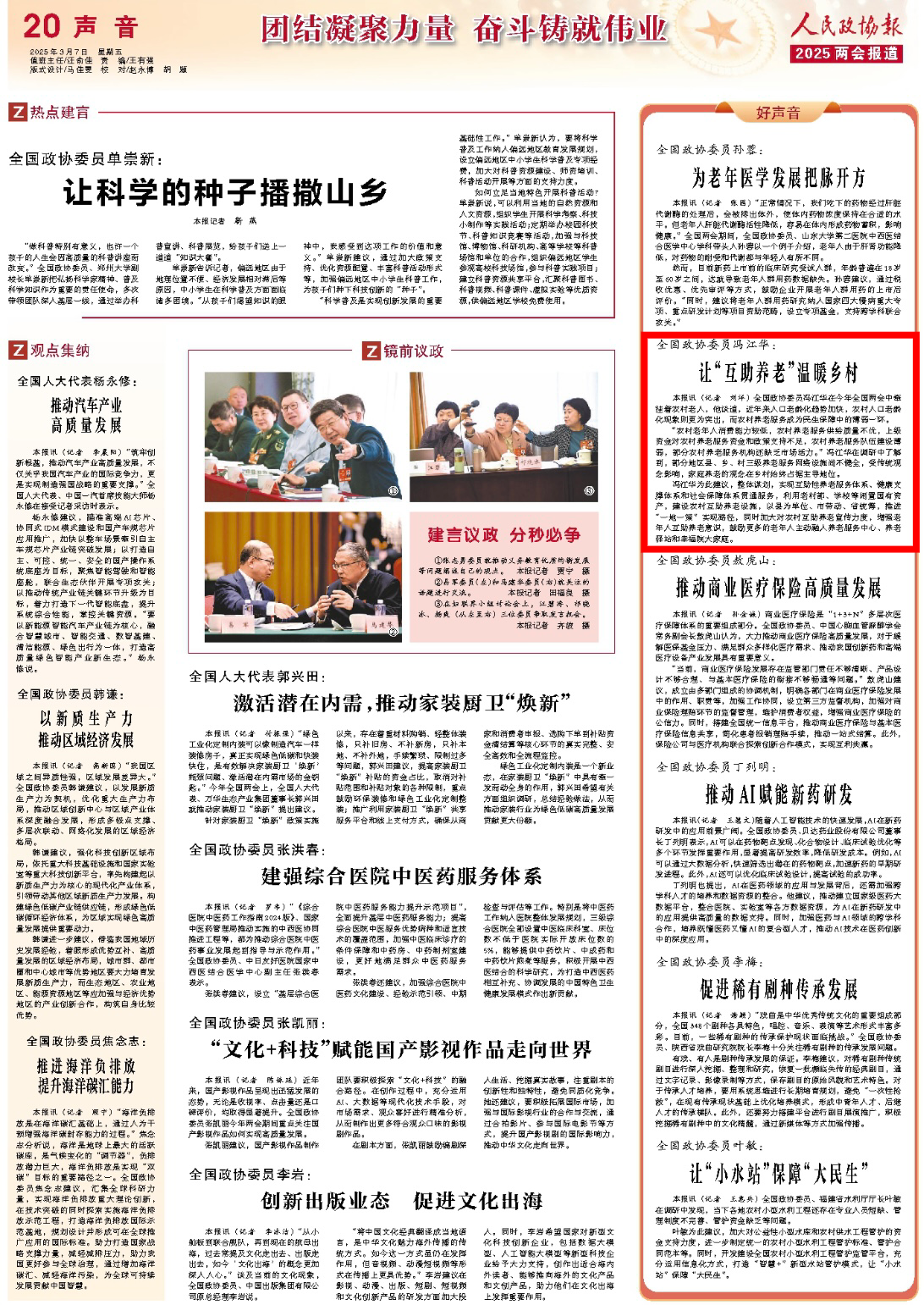 冯江华为此建议,整体谋划,实现互助性养老服务体系、健康支撑体系和社会保障体系贯通服务,利用老村部、学校等闲置国有资产,建设农村互助养老设施,以县为单位、市带动、省统筹,推进“一地一策”实现路径,同时加大对农村互助养老宣传力度,增强老年人互助养老意识,鼓励更多的老年人主动融入养老服务中心、养老驿站和幸福院大家庭。