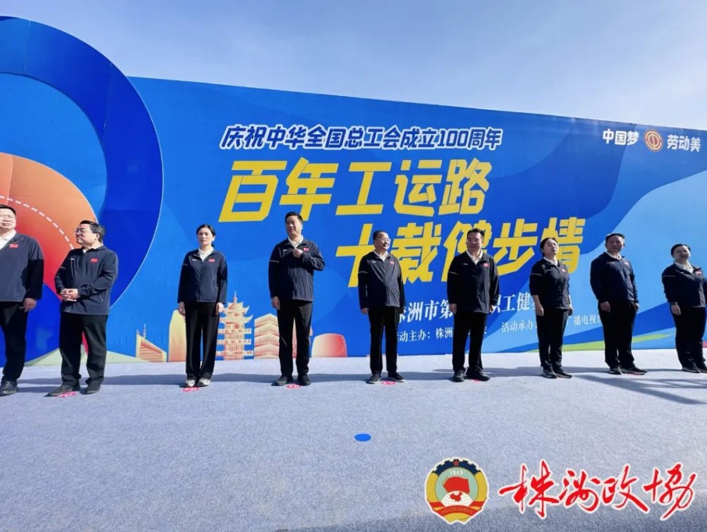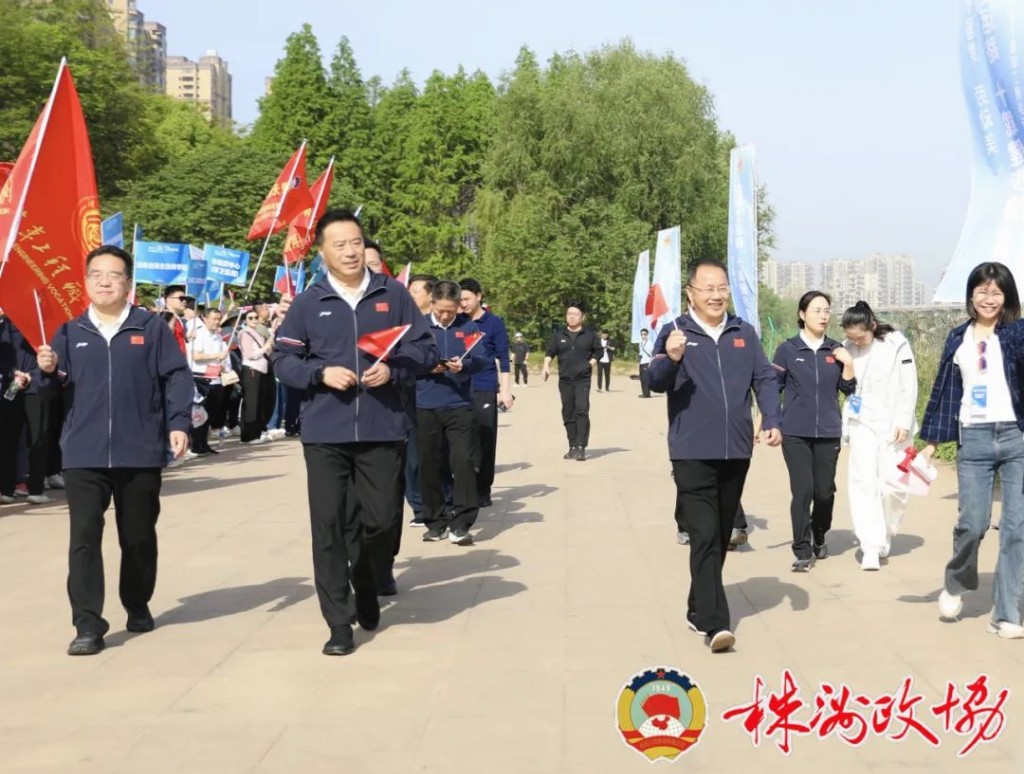 4月15日,株洲市第十届职工健步行活动在湘江之畔举行。市政协主席聂方红出席活动并为队伍授旗。