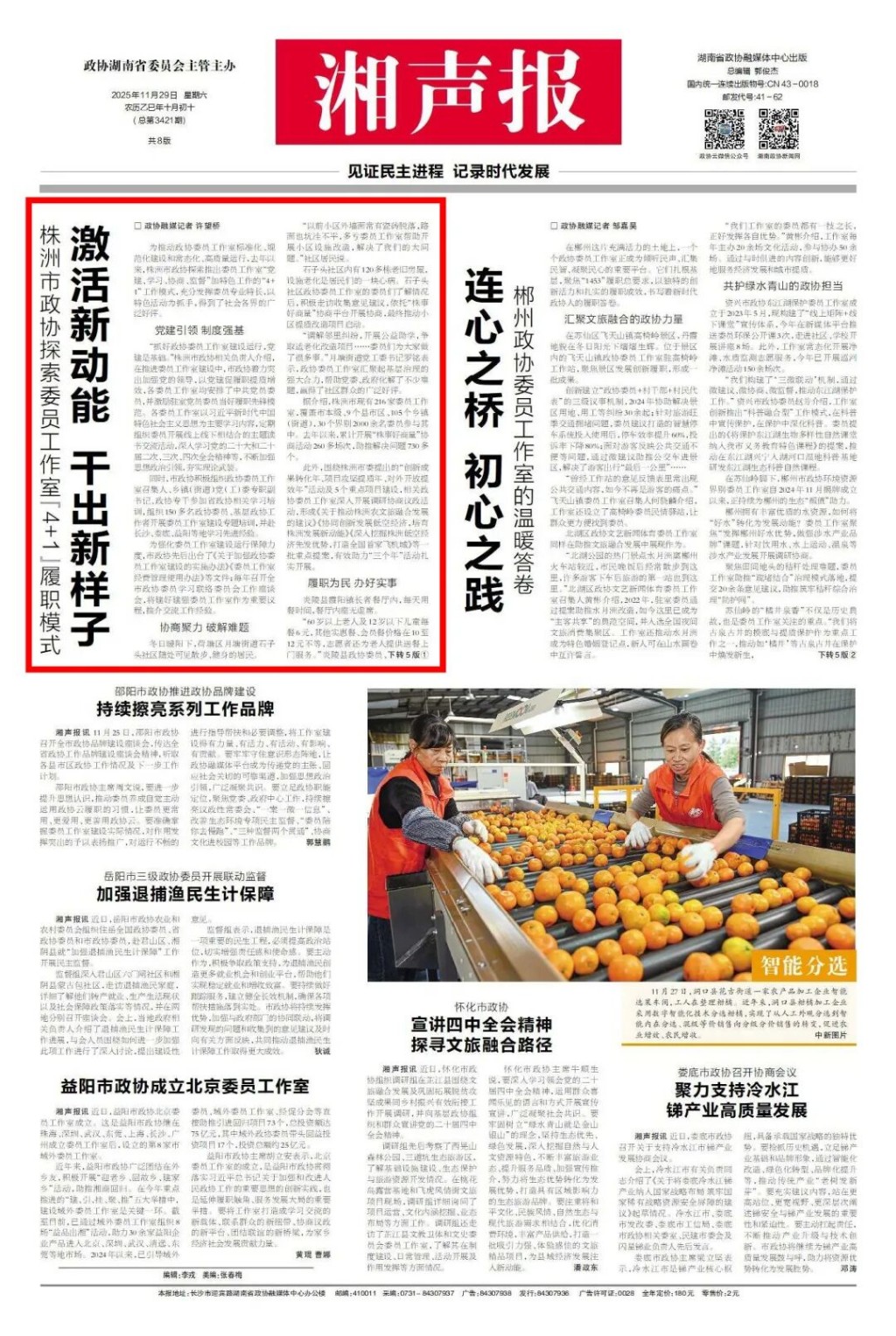 ▲《湘声报》2025年11月29日头版头条