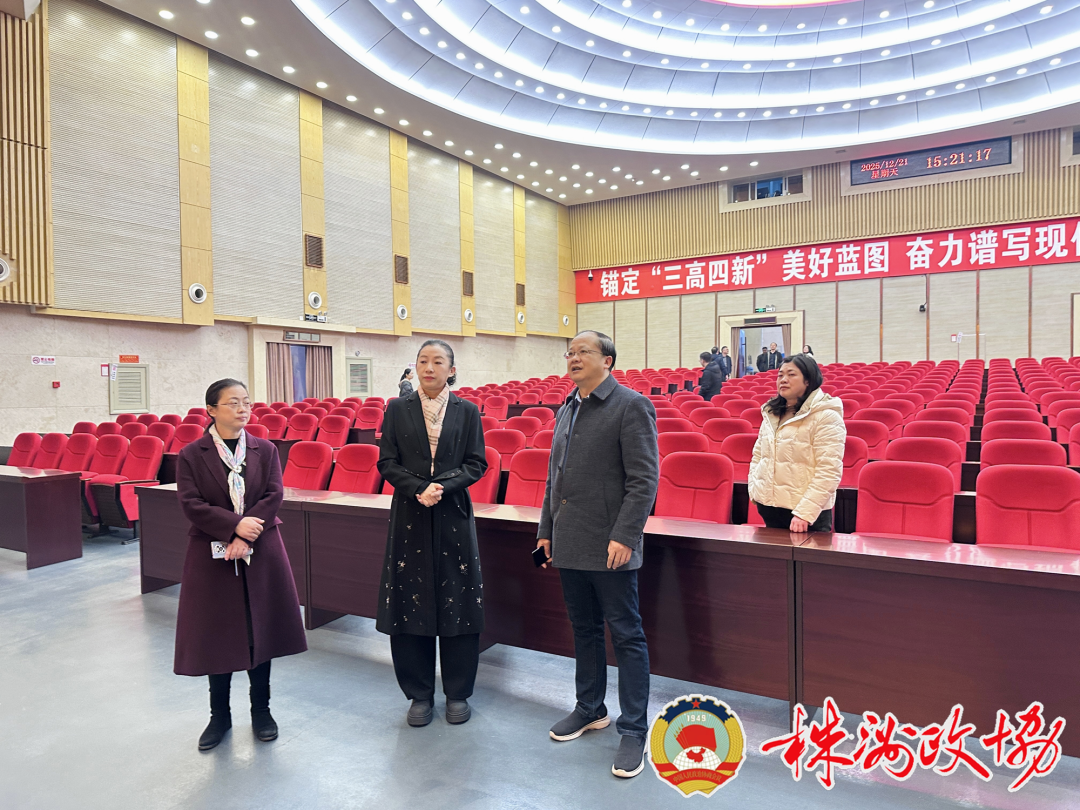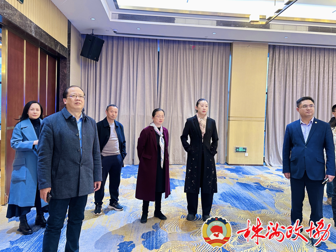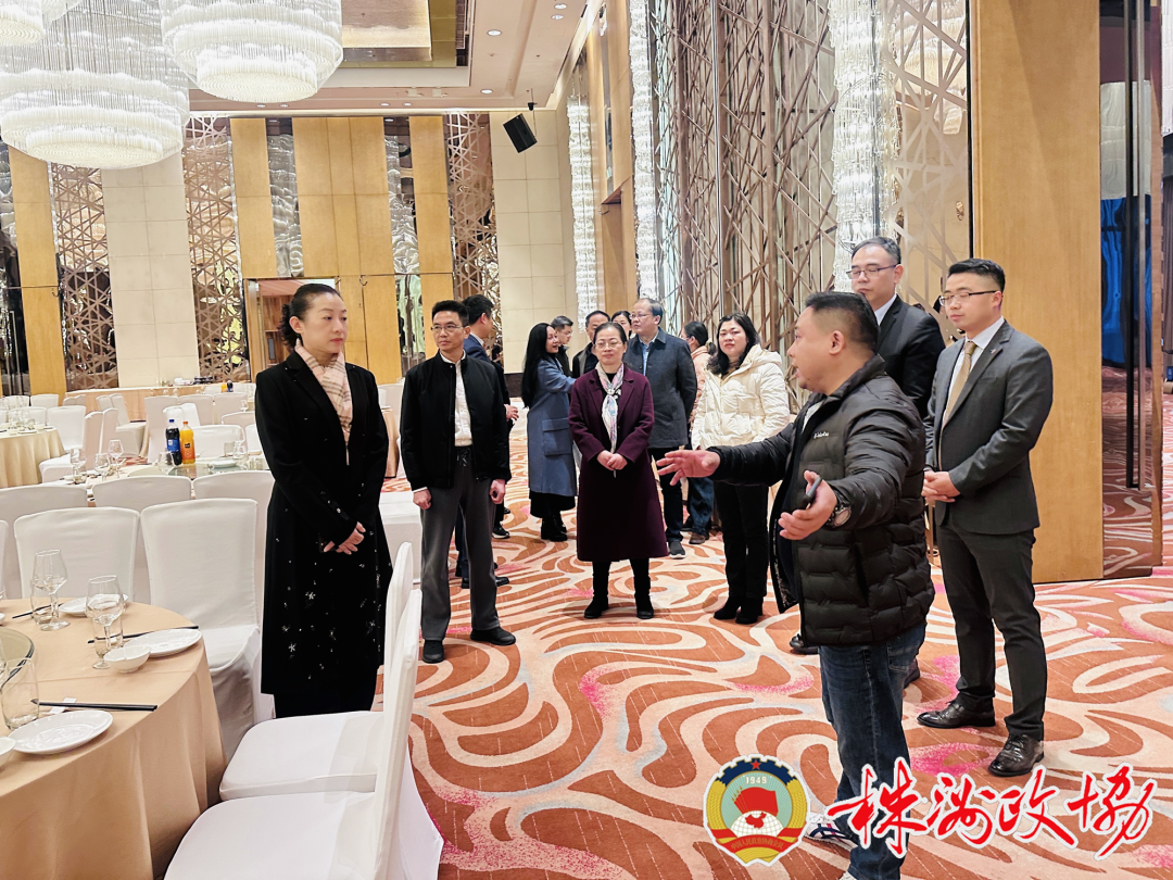 政协株洲市第十届委员会第五次会议将于12月23日开幕。21日下午,市政协副主席、大会秘书处秘书长杨小幼带队就会场、酒店等地部署情况进行检查和确认,并就相关细节提出改进意见。