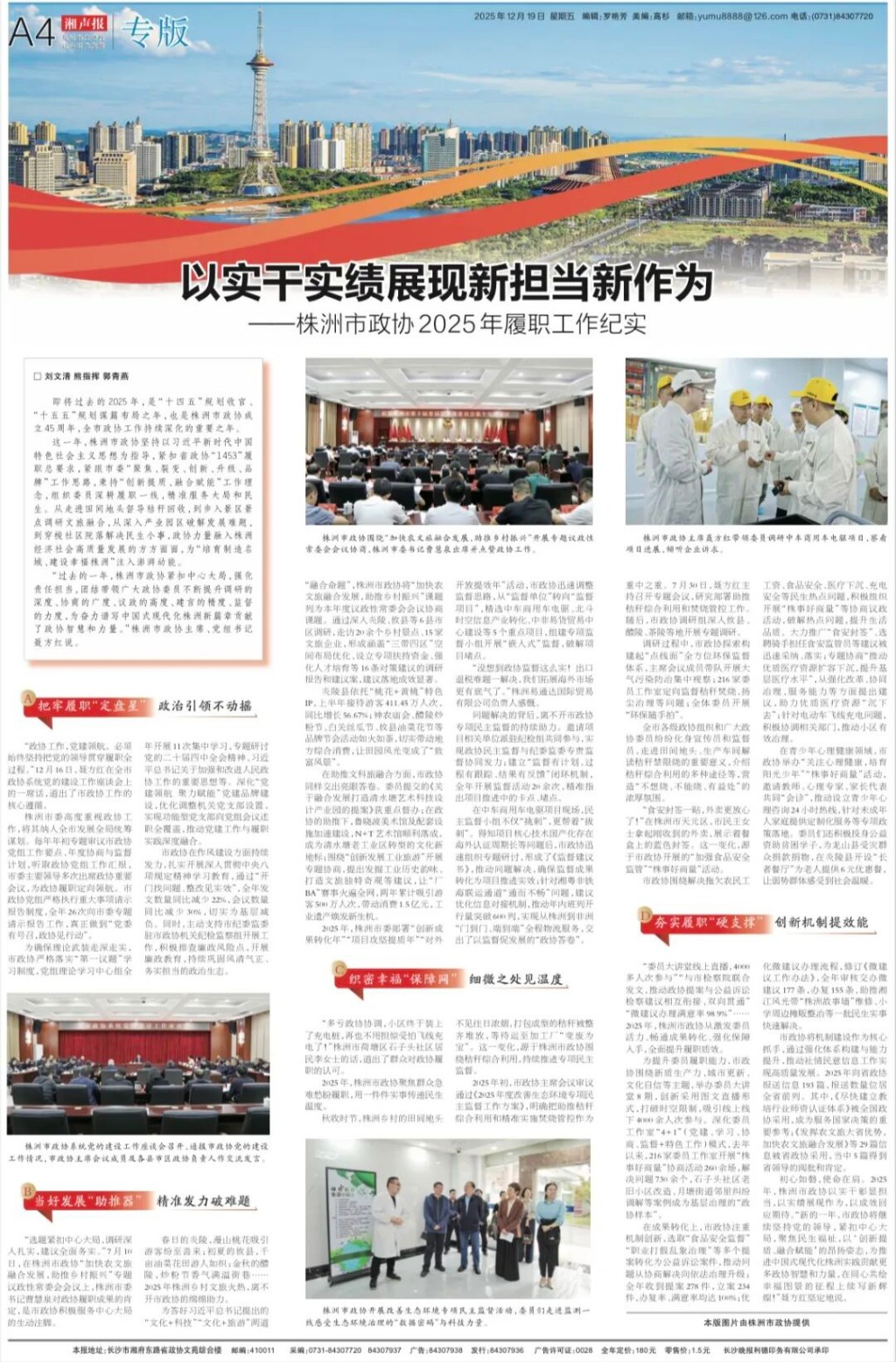 即将过去的2025年,是“十四五”规划收官、“十五五”规划谋篇布局之年,也是株洲市政协成立45周年,全市政协工作持续深化的重要之年。
