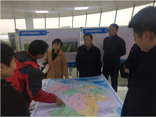 委员一行来到芦淞区通用航空产业园,听取通用机场负责人对航空产业园园区定位、发展状况、企业入驻以及周边配套设施建设规划等情况介绍,并参观了通用机场的塔台,在塔台上鸟瞰通用机场的全貌,了解塔台工作原理以及飞机飞行航线的设计原理。
