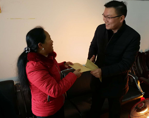 市政协人资环委副主任闫春杰为刘贵桂家中送去慰问金