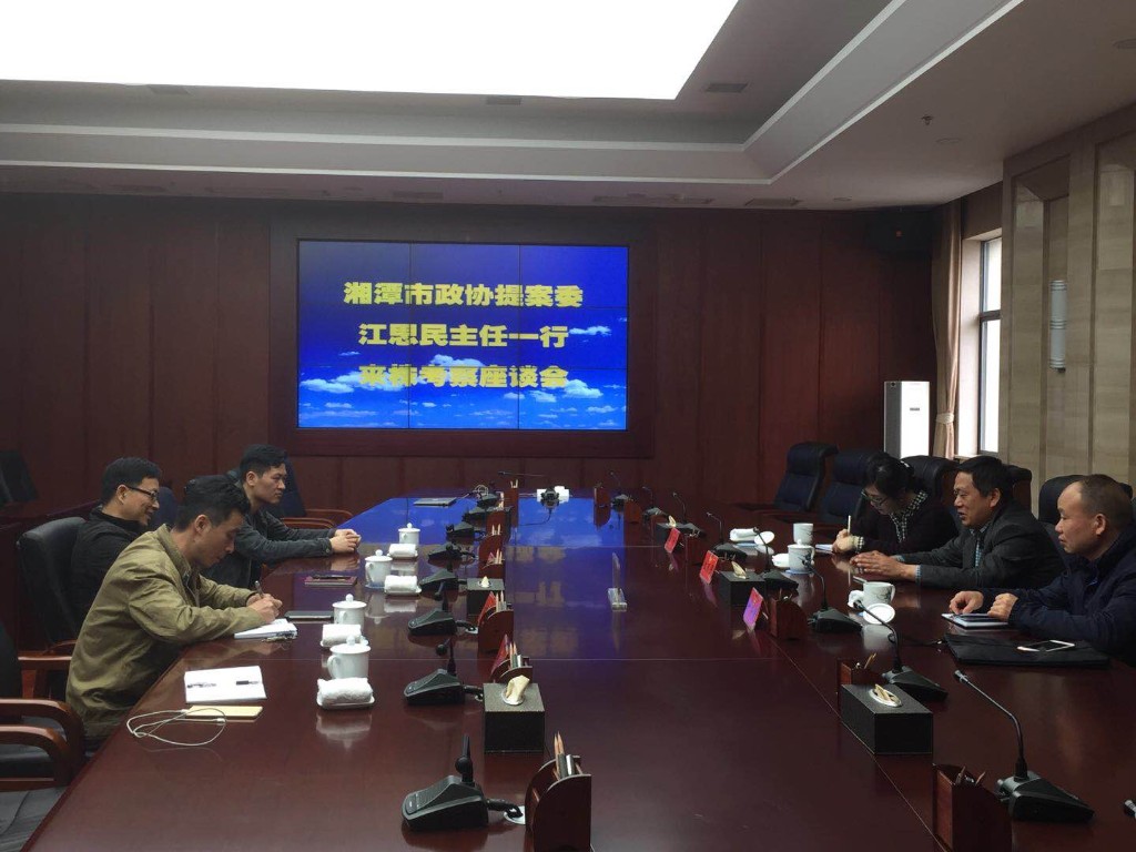 4月16日,湘潭市政协提案委主任江思民一行来株调研,就提案系统相关情况进行交流。株洲市政协提案委主任王岿然主持召开座谈会。
