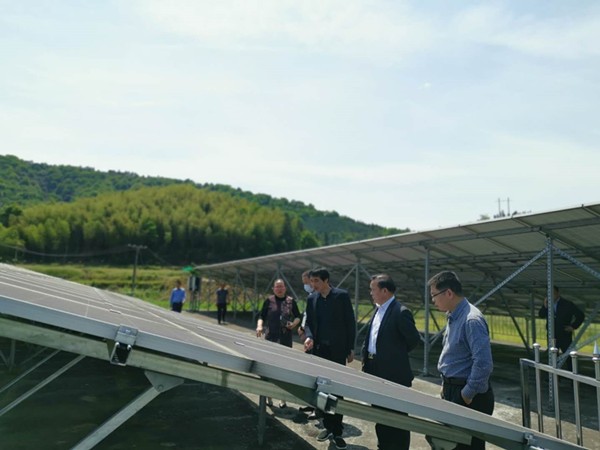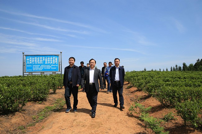 余明刚一行先视察了大田村有机茶产业扶贫基地。茶园面积近100亩,绿意浓浓,生机勃勃,采取“集体+公司+基地+贫困户”模式经营,今年已实现产效10000余元,有效增强了村集体经济造血功能。接着视察了光伏发电基地。基地占地面积600平方米,带动贫困户12户,年终分红每户1000余元。