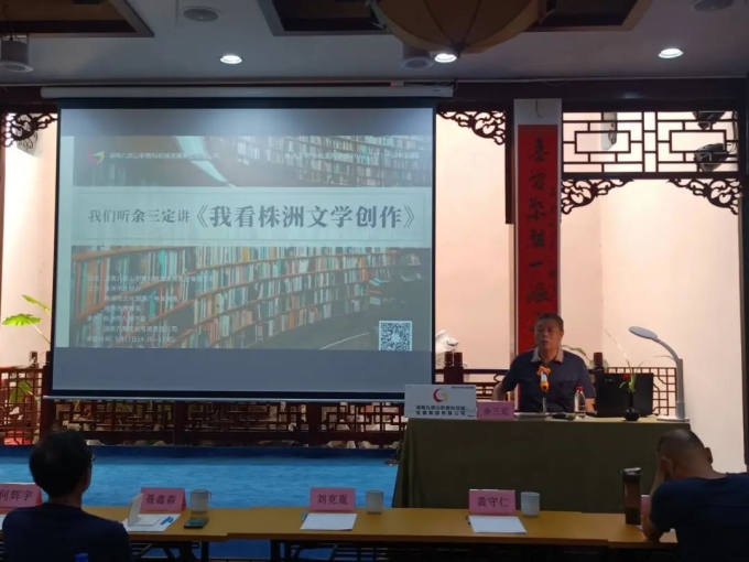 9月17日,市政协学联委委员工作室组织周文杰、齐晓武委员和相关知名人士、文学爱好者、市民代表,在株洲市九畹书院开展“喜迎二十大,委员在行动”暨“委员活动日”之传承株洲文学创作专题讲座,邀请湖南理工学院中文系二级教授、中国作家协会会员、中国文艺评论家协会理事余三定主讲。