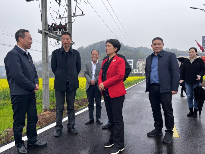 在联点村,周雪辉与攸县宁家坪镇、自力村党员干部和驻村工作队员座谈交流,听取推进乡村振兴工作情况汇报,详细了解产业发展及项目建设、驻村工作开展等情况。,现场查看了环民达兴生态示范园、南湖山庄的旅游路和王家山水库。