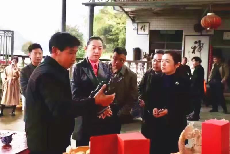 杨小幼一行先后来到芦淞区钱桥村马安岭蒋少华家调研养殖、香猪肉品和土蜂蜜制作技艺;竹林村调研矛坡老酒古法酿造技艺,看百年酒窖;苦竹村了解张富文非遗雕龙工艺。