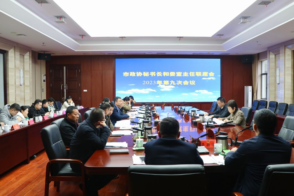 11月30日,市政协召开秘书长和委室主任联席会议2023年第九次会议,总结前阶段工作完成情况,研究部署近期重点工作。市政协秘书长许志汉主持会议,市政协副秘书长、各委室主任出席。