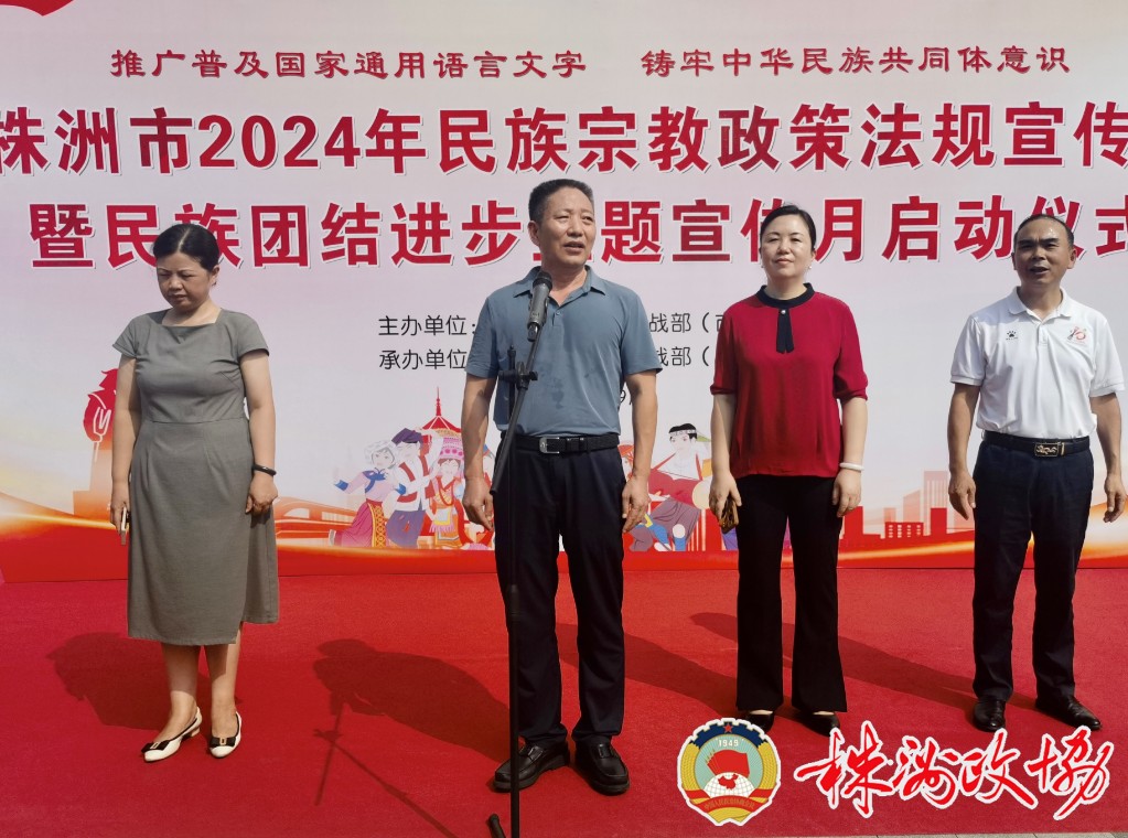 9月5日,市政协少数民族、宗教界别委员工作室开展“委员活动日”活动。本次活动以株洲市2024年民族宗教政策法规宣传月暨民族团结进步主题宣传月启动仪式为契机,向广大市民宣传党的二十届三中全会精神、民族宗教理论政策和法律法规。市政协党组成员、副主席朱胜辉出席活动并宣布宣传月启动。