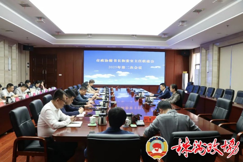 3月27日下午,市政协秘书长和委室主任联席会2025年第二次会议召开,总结前阶段工作完成情况,研究部署近期重点工作。市政协秘书长许志汉主持会议,市政协副秘书长、各委室主任出席。