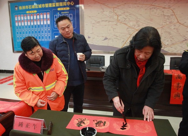 2019年1月9日,湖南株洲市石峰区城市管理和行政执法局联手株洲民革书画院、北京正举沈鹏书画院、北京宣和书画艺术研究院,为全区环卫职工奉献了一场以“辞旧迎新”为主题、“送春联、送福送平安”的文化盛宴。