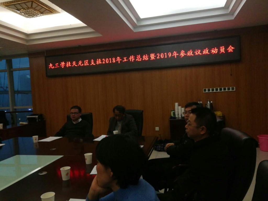 元月10日,九三学社株洲天元支社召开2018年度工作总结暨参政议政培训会议。支社主委周建文以及全体支社社员参加了会议,会议由支社副主委胡志清主持,社市委专职副主委肖运平等同志应邀出席。
