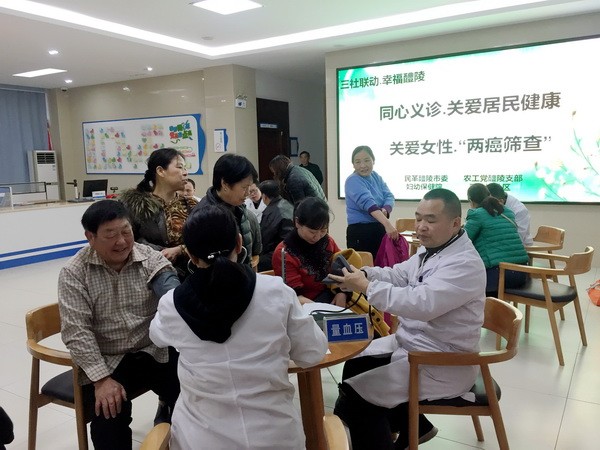 2019年3月27日上午,民革醴陵市委、农工党醴陵支部在同心社区马放塘社区开展义诊活动,组织了来自湘东医院、醴陵市中医院的眼科、呼吸内科、耳鼻喉科、心血管内科、骨科、普外科、皮肤美容科、神经外科、心理咨询等15位医学专家,并携带多种医疗仪器及设备,为社区居民进行免费诊治。